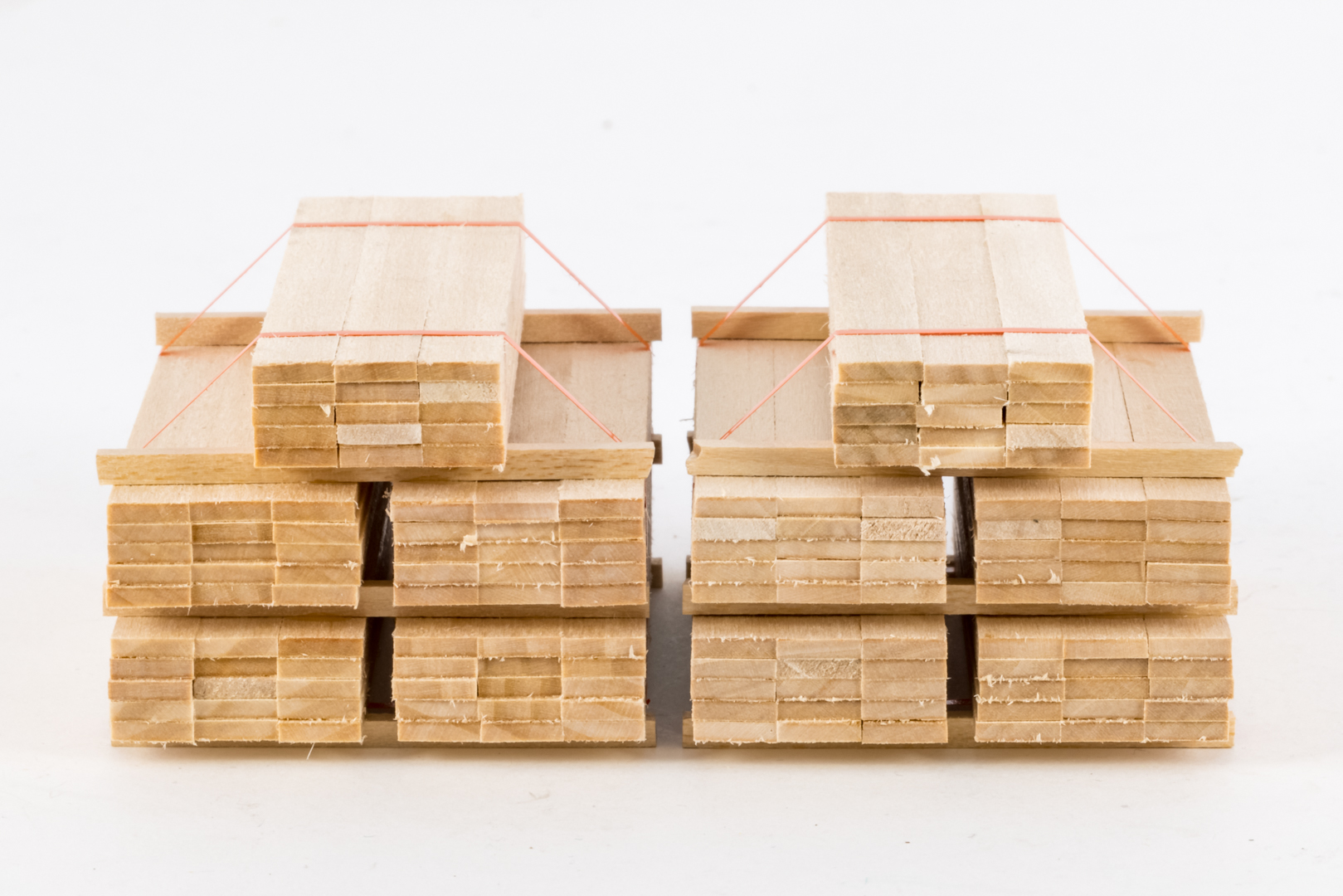 Cut wood board stack two sets