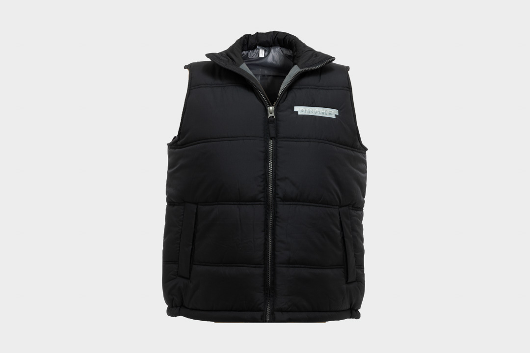 Men's Black and Grey Puffer Vest with Drake Logo