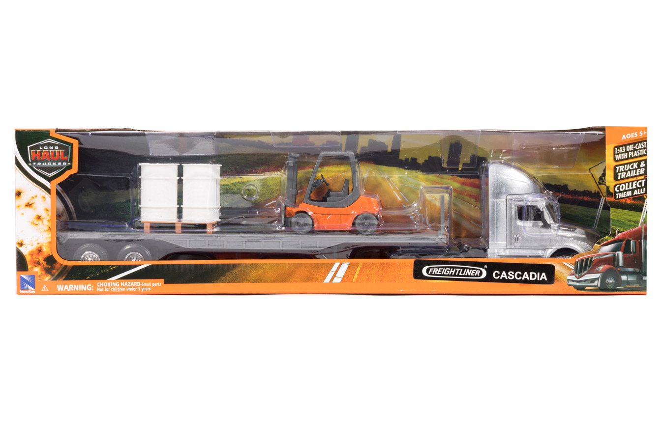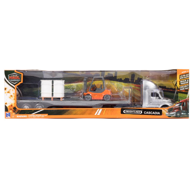 1:43 Freightliner Cascadia Flatbed w/Forklift & Barrels