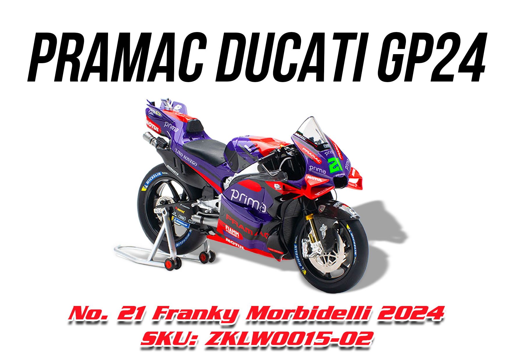 Pramac Ducati GP 24 No. 21 Franky Morbidelli 2024 Scale 1:12